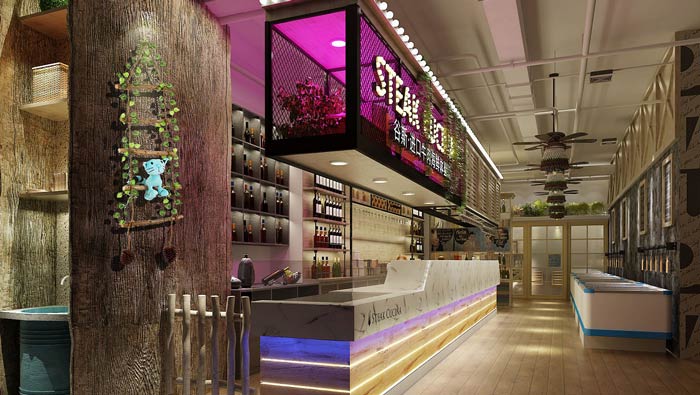 西餐廳前臺裝修設計:工業(yè)風、田園風在這里得到很好的融合,讓客戶進入空間,首先感受到的是自然氣息,自然氣息讓客戶焦躁的心靈得到有效的緩解,讓客戶吃的安心、吃的放心。