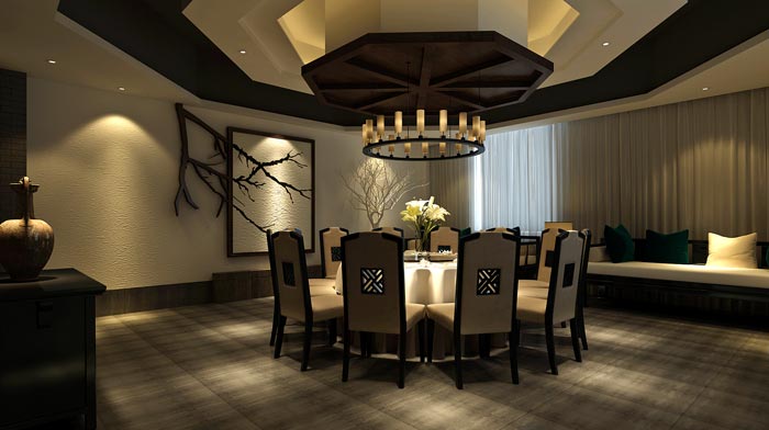 設(shè)計(jì)理念:設(shè)計(jì)師在現(xiàn)代中式風(fēng)格中餐廳裝修設(shè)計(jì)的時(shí)候,秉承為顧客營(yíng)造一個(gè)時(shí)尚、舒適、又不失文化底蘊(yùn)的就餐環(huán)境為中心點(diǎn)。