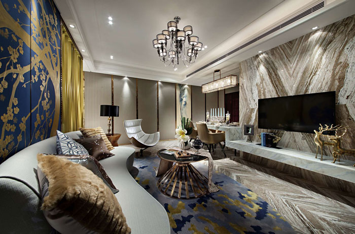 在軟裝的配飾中運用了新古典后現(xiàn)代的家具風格,讓略顯沉悶的空間增添了時尚奢華的氣氛;