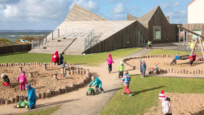 教室采光的設(shè)計(jì):室內(nèi)與室外海洋景觀緊密聯(lián)系,全年都可以提供理想的日光照明條件,讓孩子們?cè)谶@里無(wú)憂無(wú)慮的成長(zhǎng),溫暖的陽(yáng)光見(jiàn)證了孩子的成長(zhǎng),也照開(kāi)了孩子的心,讓孩子們從小學(xué)會(huì)積極向上的生活,為孩子的茁壯成長(zhǎng)打下堅(jiān)實(shí)的基礎(chǔ)。